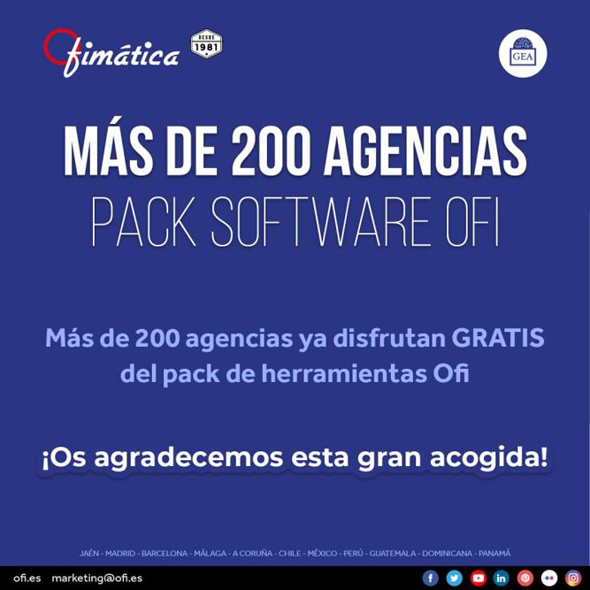 El software Ofi “es un conjunto de herramientas muy completo, desarrollado para facilitar el trabajo al agente y ofrecido de forma gratuita a las agencias GEA. Ya que la digitalización ha llegado bruscamente a nuestras vidas para quedarse, como Grupo debemos ofrecer el mejor servicio para ayudar a nuestras asociadas al cambio. Por supuesto, seguiremos trabajando en esa línea para avanzar al mismo ritmo que marque la tecnología”, concluye Lara.