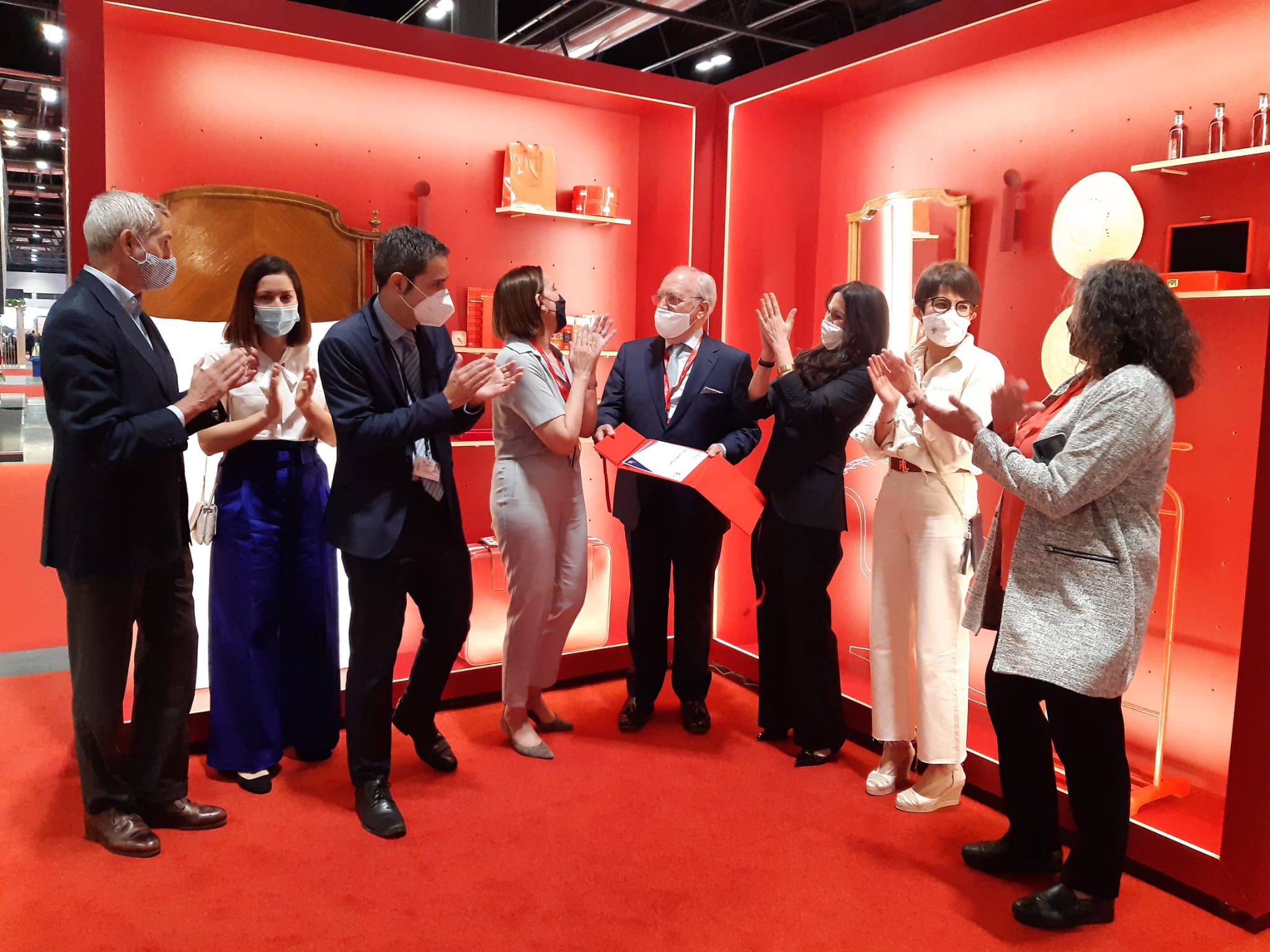 La directora de FITUR, María Valcarce, ha sido la encargada de dar este reconocimiento en una visita al stand de AEHM, en la que han estado presentes el presidente de esta Asociación, Gabriel García Alonso, y la vicepresidenta ejecutiva, Mar de Miguel, entre otras personalidades.
