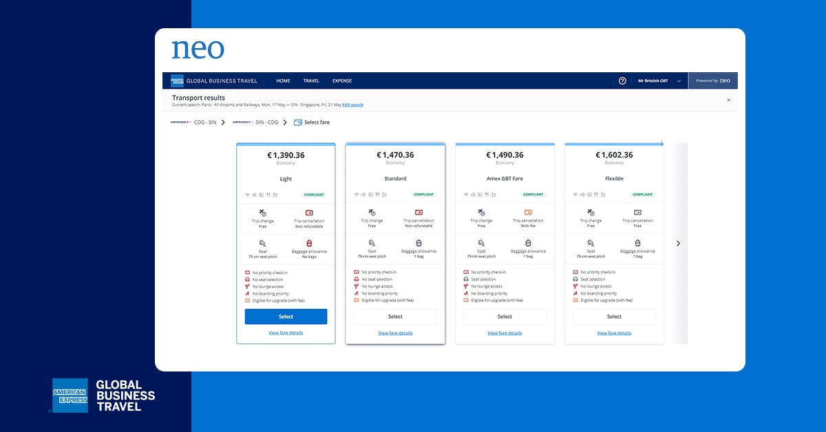 American Express Global Business Travel (GBT) ha cambiado la forma en la que presenta las tarifas aéreas, en su herramienta de autoreservas de viajes en propiedad, Neo.