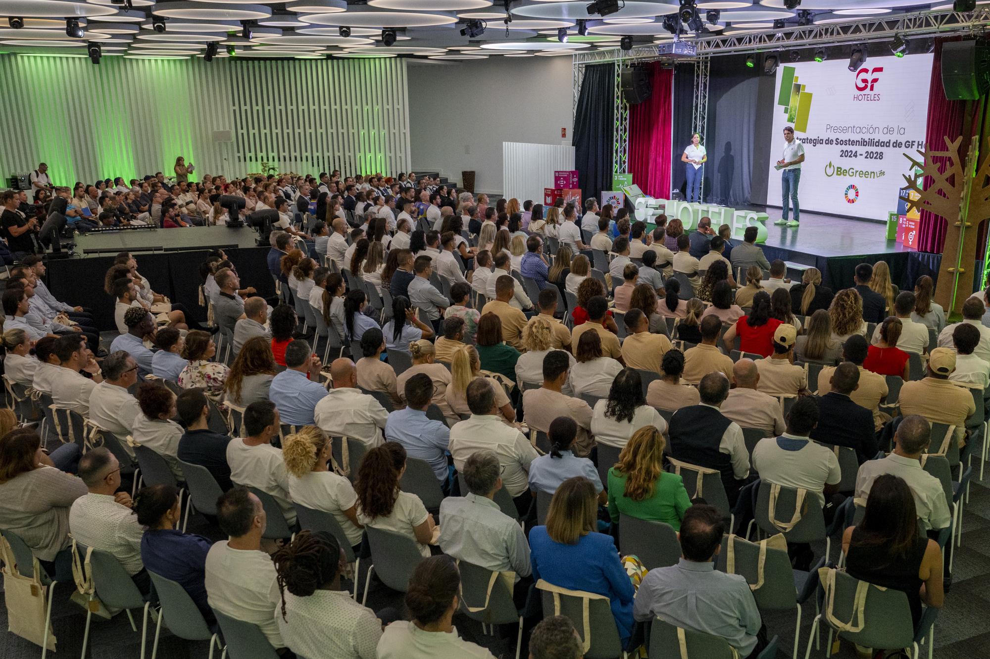 GF Hoteles celebró el lanzamiento de su nueva Estrategia de Sostenibilidad 2024-2028, denominada BeGreenLife, en un evento realizado en el hotel GF Victoria, con la participación de más de 300 asistentes, entre empleados y colaboradores estratégicos de la cadena. La presentación contó con la intervención de Victoria López, presidenta de Grupo Fedola, y de Juan Carlos de León, director de Operaciones de GF Hoteles, quienes subrayaron la importancia de este ambicioso proyecto de sostenibilidad para la cadena hotelera y su impacto en el sector.