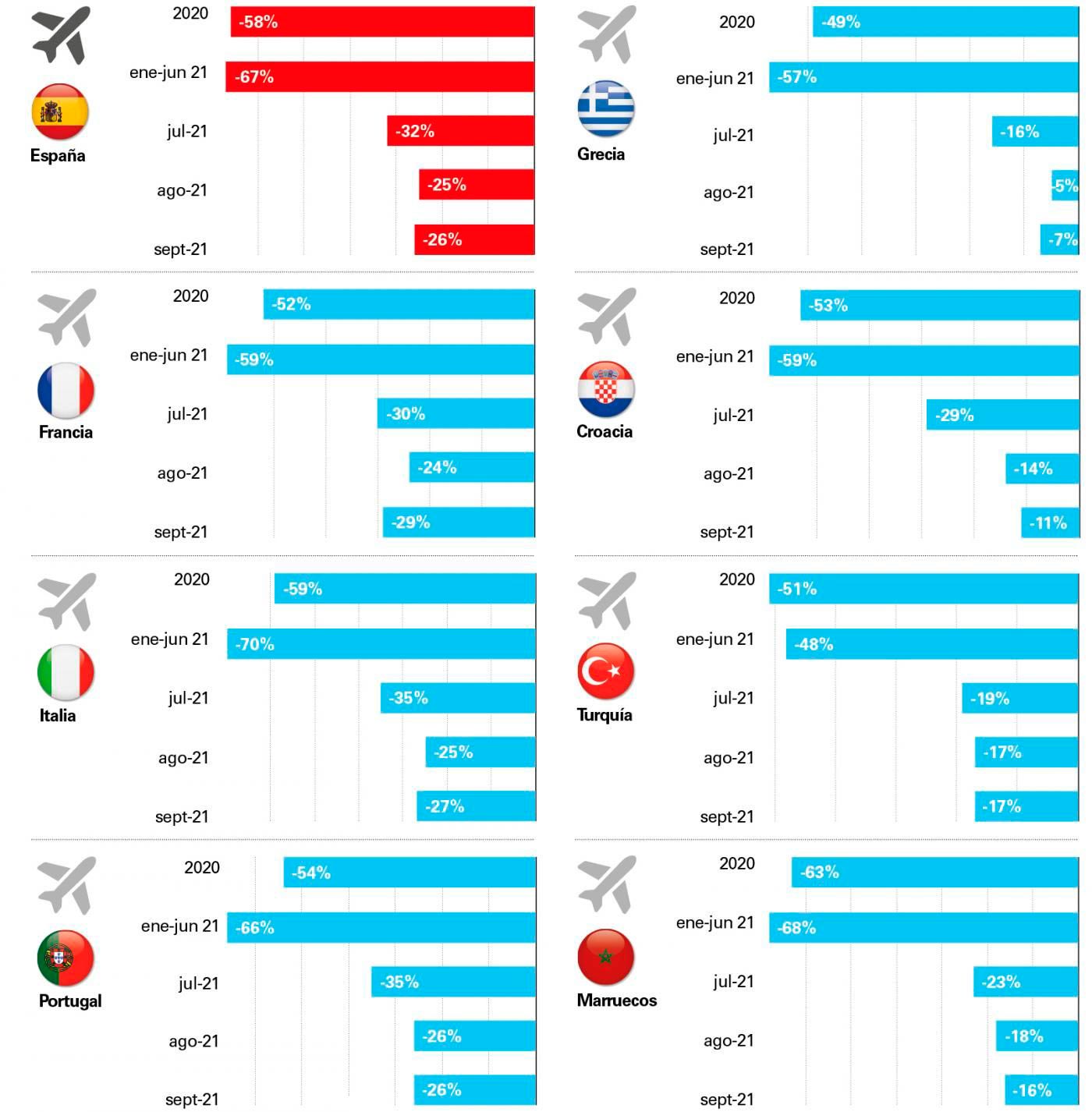 Esta esperada consolidación se centra en las buenas cifras del Turismo doméstico y en la Unión Europea (UE), y la gradual recuperación de los mercados emisores británico y americano, que permitirá una mejora progresiva del nivel de actividad a lo largo del año. En cambio, pese a este notable recuperación en comparación con el pasado año 2020, aún avisan que la reactivación no será total, debido a una recuperación aún muy incompleta del Turismo de largo radio.