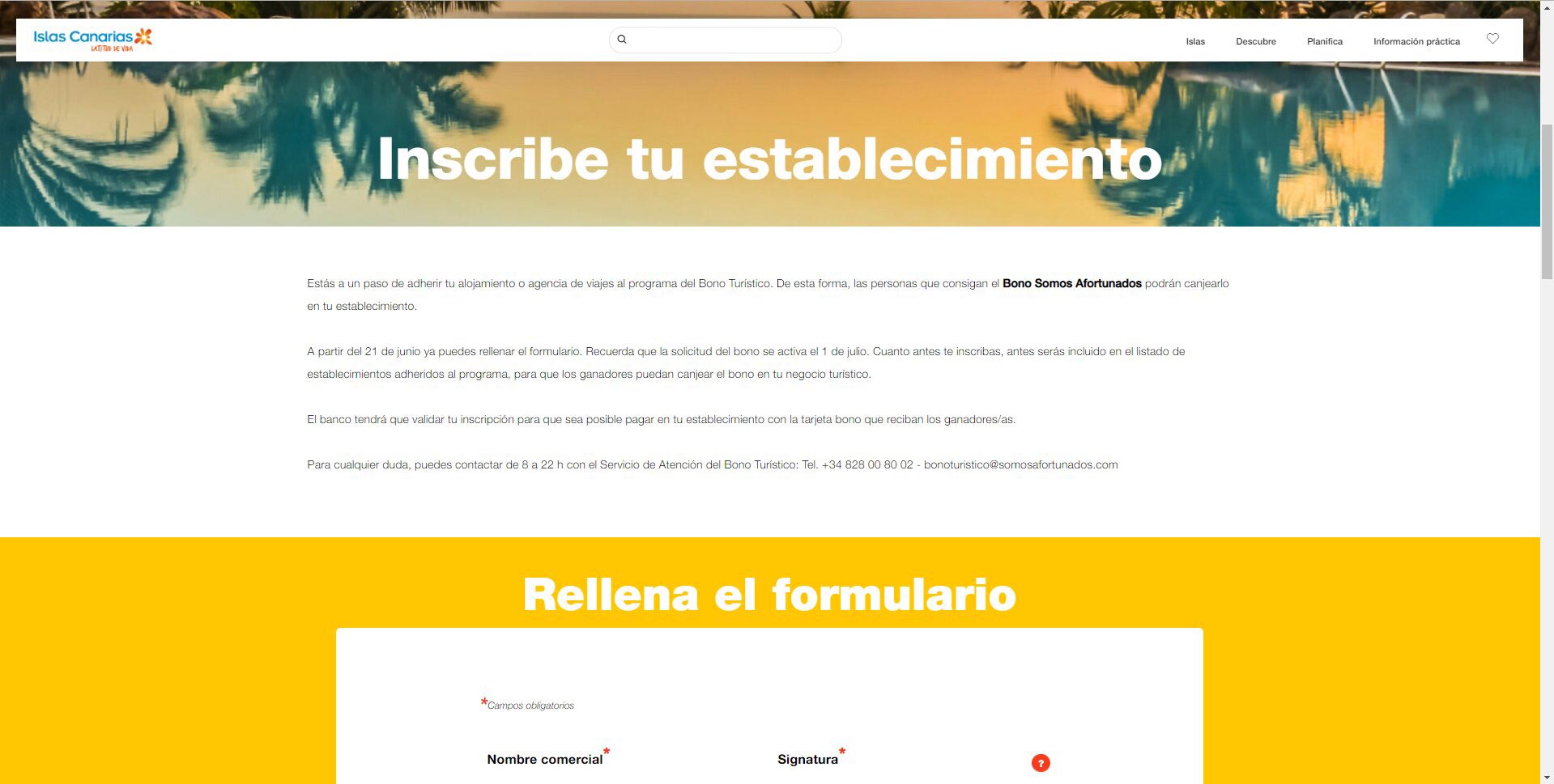 Desde el gobierno canario informan de que los demandantes deben estar inscritos en el Registro General Turístico de Canarias en el momento de realizar la solicitud. Además, deben disponer de al menos un TPV físico con número de comercio (FUC) que los identifique en el servicio de pagos y permita realizar las operaciones con las tarjetas monedero, siendo necesario que el desembolso se realice en el propio establecimiento adherido. Una vez hayan cumplimentado el formulario y aceptado las condiciones, se hará una consulta automatizada al Registro para verificar su inclusión en la misma. Tras ello, el establecimiento recibirá un correo electrónico al email de contacto referido en el formulario para permitir su validación y formar así parte del programa.