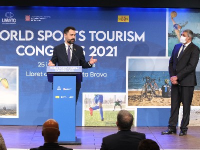 El consejero de Empresa y Trabajo, Roger Torrent y el secretario general de la Organización Mundial del Turismo, Zurab Pololikashvili han destacado la potencialidad del deporte en la promoción de un turismo responsable y sostenible