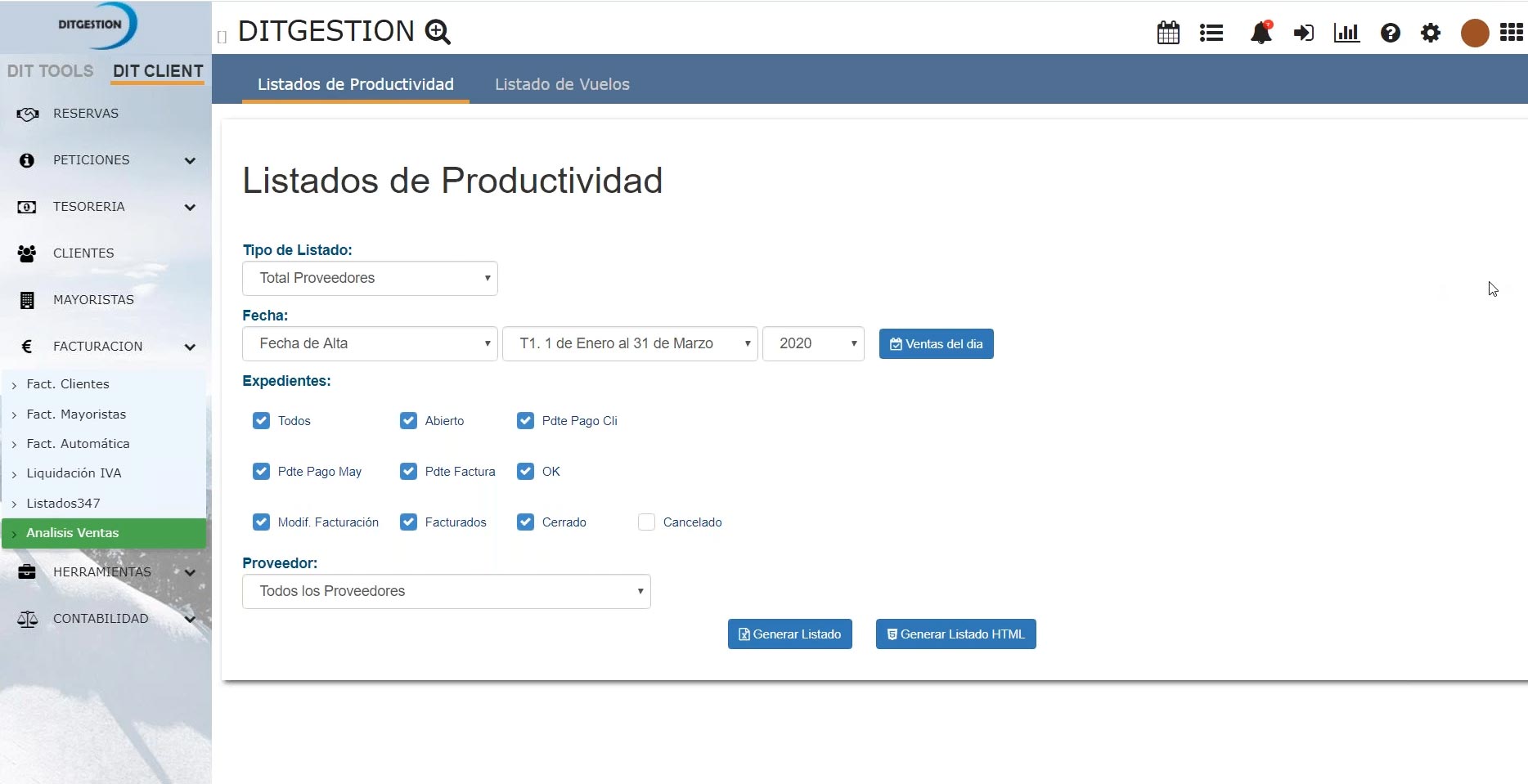 Ahora, el Dit Conta se hizo mayor, y se convirtió en Dit Client, una evolución sincronizada con su propia intranet que permite tenerlo todo en una misma pantalla, desde los más de 300 mayoristas con los que el grupo Dit Gestión tiene acuerdos, hasta ofertas de sus propias asociadas, tutoriales, noticias, TPV Virtual, mails masivos, tesorería, control de presupuestos, facturación, estadísticas de ventas, calendario de reservas, módulo contable y un gran número de herramientas que facilitan el día a día de cualquier agencia de viajes, sea cual sea su volumen de ventas. Y todo ello accesible desde cualquier dispositivo y multitarea.