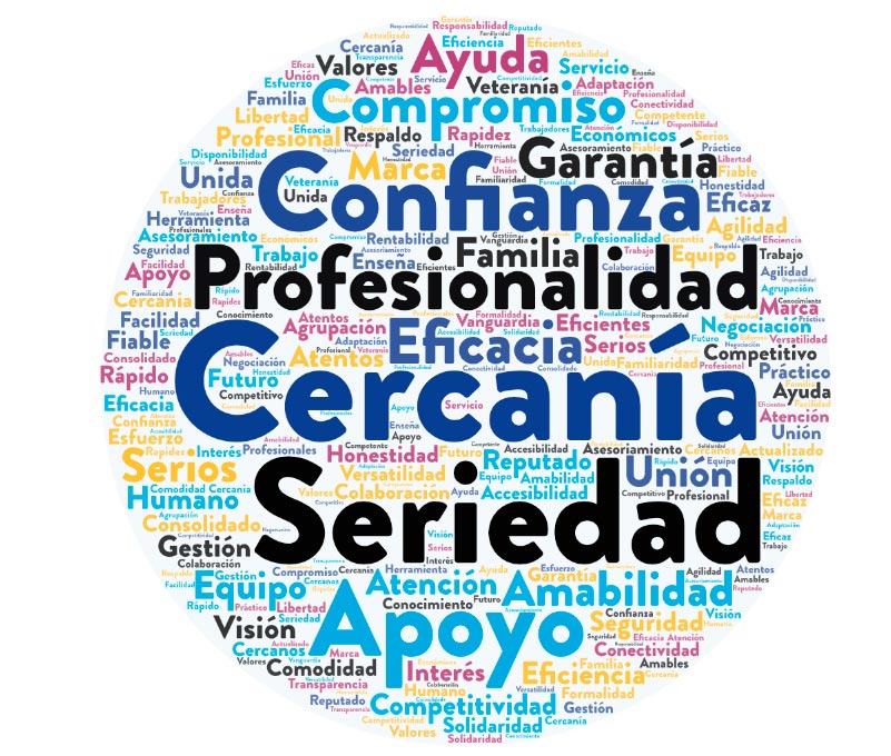 Ante la pregunta, “si tuvieras que definir a Grupo GEA con tres palabras, tres ideas que definan lo que es, lo que representa: ¿cuáles serían esas palabras?”, las respuestas empiezan a subir en un goteo continuo. La encuesta lanzada por AdLátere para evaluar el grado de satisfacción de las agencias asociadas al Grupo ha dado resultados muy claros. Tras una alta y rápida participación y tras tratar de forma estadística las respuestas, el informe llega a dirección general con una nube de palabras como resumen. “Que nos perciban como cercanos, serios, profesionales y de confianza ha sido una grata noticia para todo el equipo humano de GEA”, dice la directora general, Sara Fernández.