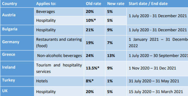 Hotrec informa sobre las reducciones temporales del IVA