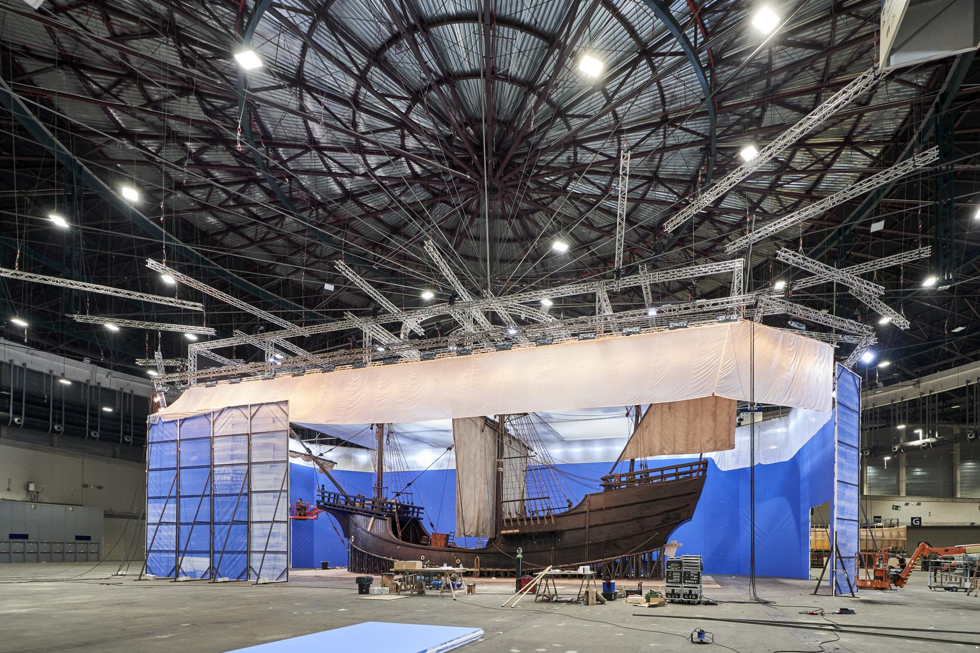 El Pabellón 12 de Ifema Madrid se ha convertido desde el pasado mes de abril en el mayor plató cinematográfico de España. Cerca de 14.000 metros cuadrados de superficie y una altura de 22 metros han permitido que en su interior se haya construido una réplica del barco con el que Magallanes y Elcano dieron la vuelta al mundo, donde se rodará buena parte de las escenas de una de las series más prometedoras de Amazon Prime Video y RTVE, Sin Límites.
