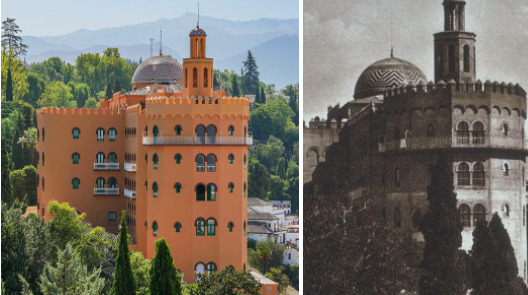 Más llamativa ha sido la acción realizada a fin de restaurar todas las almenas y rehabilitar el espacio entre ellas, convirtiéndolas en una secuencia de tantas imágenes consecutivas con vistas a la ciudad de Granada como balcones entre ellas se han recuperado; como si de los fotogramas de una bella película se tratara. Porque, a decir verdad, son vistas de película. O el remozado integral de su torre del oro, en la zona oeste del hotel. Su original estructura de acero se presentaba completamente oxidada, expandiendo su volumen y generando grietas con el riesgo de no estabilizar su tamaño. Por ello se trabajó intensamente en su consolidación estructural aprovechando para devolverle su imagen original, recuperando el revestimiento de escamas cerámicas de su cúpula de cubierta. Y para que el embellecimiento fuera absoluto, nada mejor que volver a pintar toda su epidermis arquitectónica mediante el saneado y pintado de todas sus fachadas realzando ese naranja galatea que cautivó a la legión de ilustres huéspedes que dan prestigio a su Libro de oro: de Eva Peron a Marie Curie; del Aga Khan a los Príncipes de Gales; de Lorca o Alberti a Manuel de Falla o Von Karajan; de Vivien Leigh y Lauren Bacall a Rock Hudson o Yul Brynner