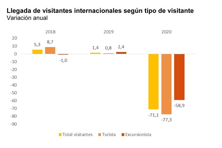 El desembolso total realizado por los turistas no residentes en España descendió un 78% en 2020