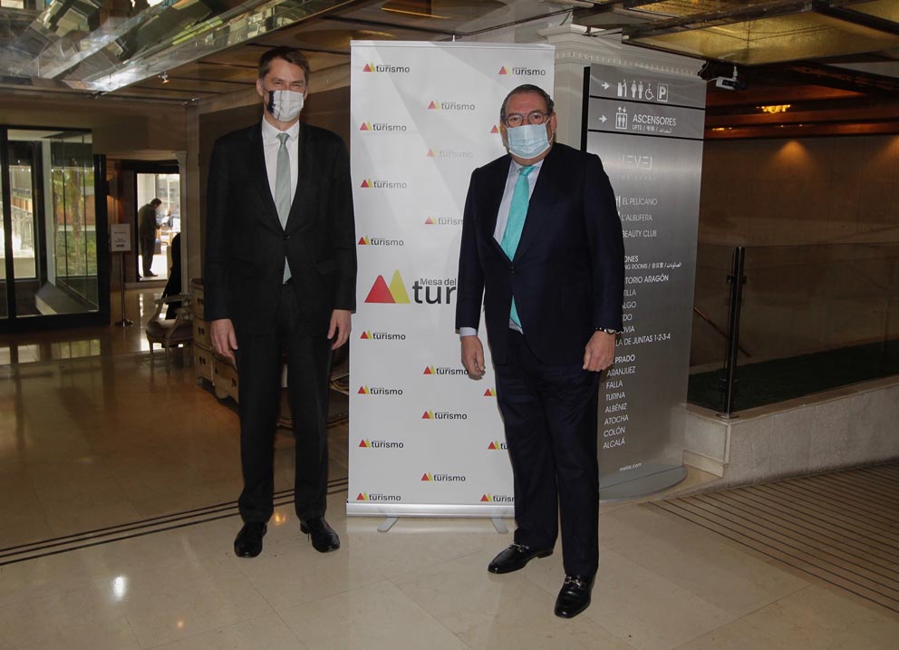 El presidente de la Mesa del Turismo, Juan Molas, considera «fundamental» que se trabaje en el establecimiento de acuerdos bilaterales entre España y Reino Unido en materia de Turismo para facilitar las conexiones aéreas. Así lo ha manifestado en una reunión con el Embajador de Reino Unido en España, Hugh Elliott, donde han debatido sobre que pasará este verano con el Turismo británico. Así, Molas ha destacado que «es legítimo que España sea el primero en hacerlo porque somos el primer destino de vacaciones de los británicos», al mismo tiempo que advierte de que «malograr este buen crédito sería un error garrafal cuando nuestro país necesita más que nunca de la contribución económica y social del Turismo para sobreponerse a la crisis».