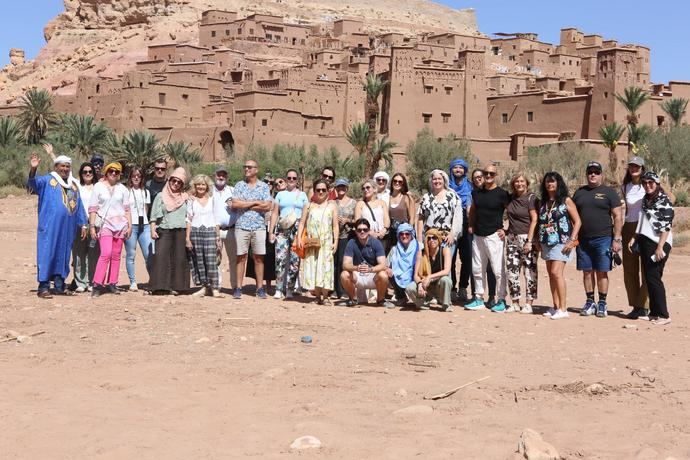 Tras las sesiones, los participantes recorrieron la Ruta de las Mil Kasbahs, desde las dunas de Merzouga hasta Ouarzazate, disfrutando de experiencias como montar en dromedario al atardecer, alojarse en campamentos nómadas y descubrir los valles del Ziz, Dadès y Todra. El viaje finalizó con la visita a la Kasbah Ait Ben Haddou, joya arquitectónica declarada Patrimonio de la Humanidad por la UNESCO, que puso el broche final a unas jornadas que unieron formación, cultura y hospitalidad.