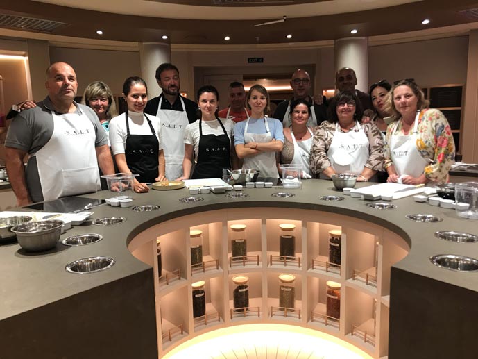 Los agentes pudieron conocer la gran novedad del Silver Moon, buque insignia de la compañía, con su concepto S.A.L.T. un programa único e innovador que permite al huésped una estrecha simbiosis con el territorio en cada escala. Esta experiencia ofrece una inmersión en la gastronomía local a través de tres localizaciones: el laboratorio culinario, la coctelería y el restaurante S.A.L.T., además de una excursión complementaria visitando los mercados y tiendas locales.